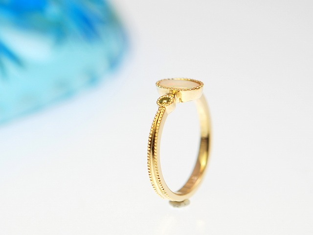 オパールの両サイドに使用した宝石は「ペリドット」8月の誕生石です。