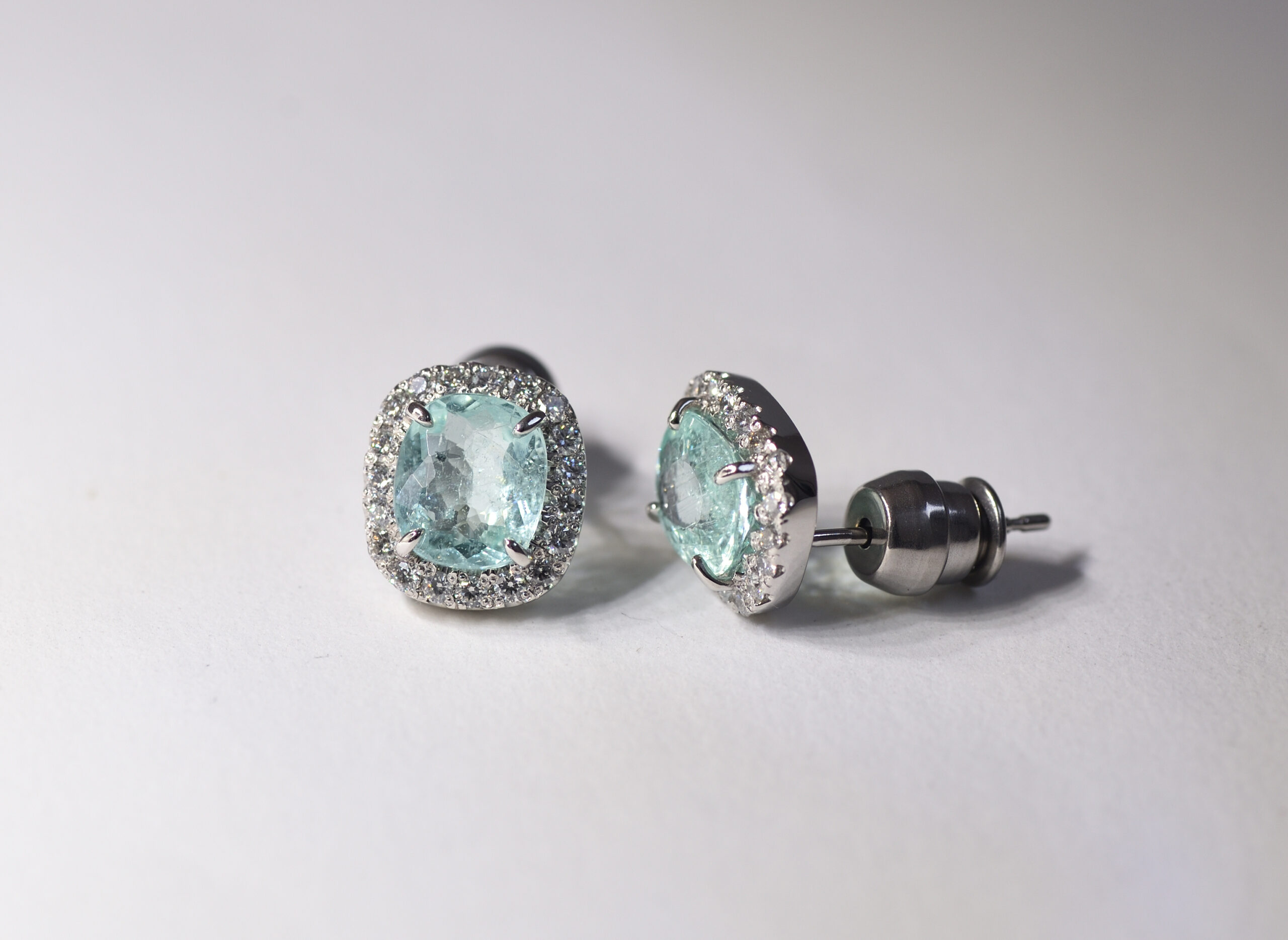 そのためピアスのようなペアのアイテムを作るために同じ色味、大きさのパライバを見つけることはかなり難しいと思います。