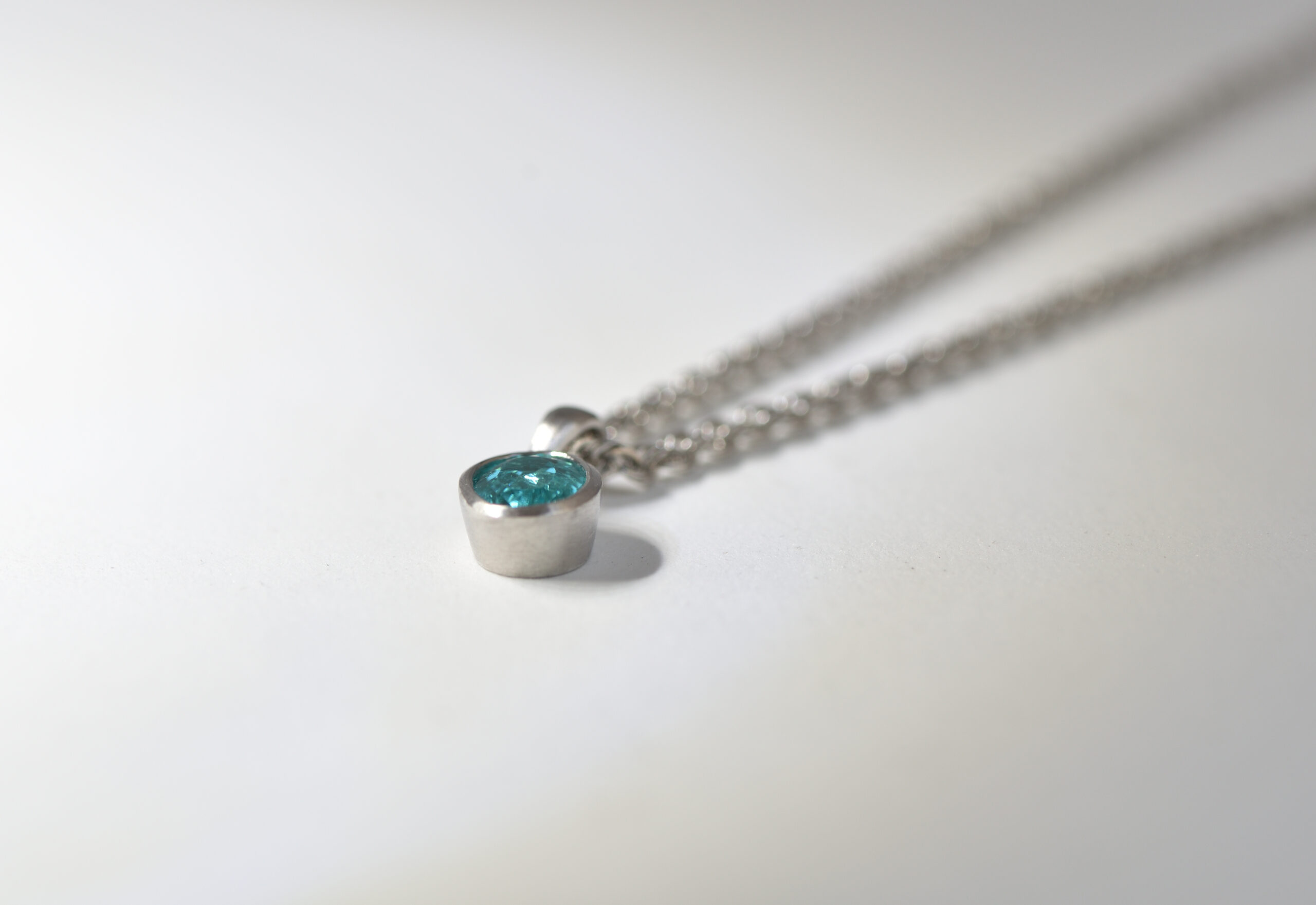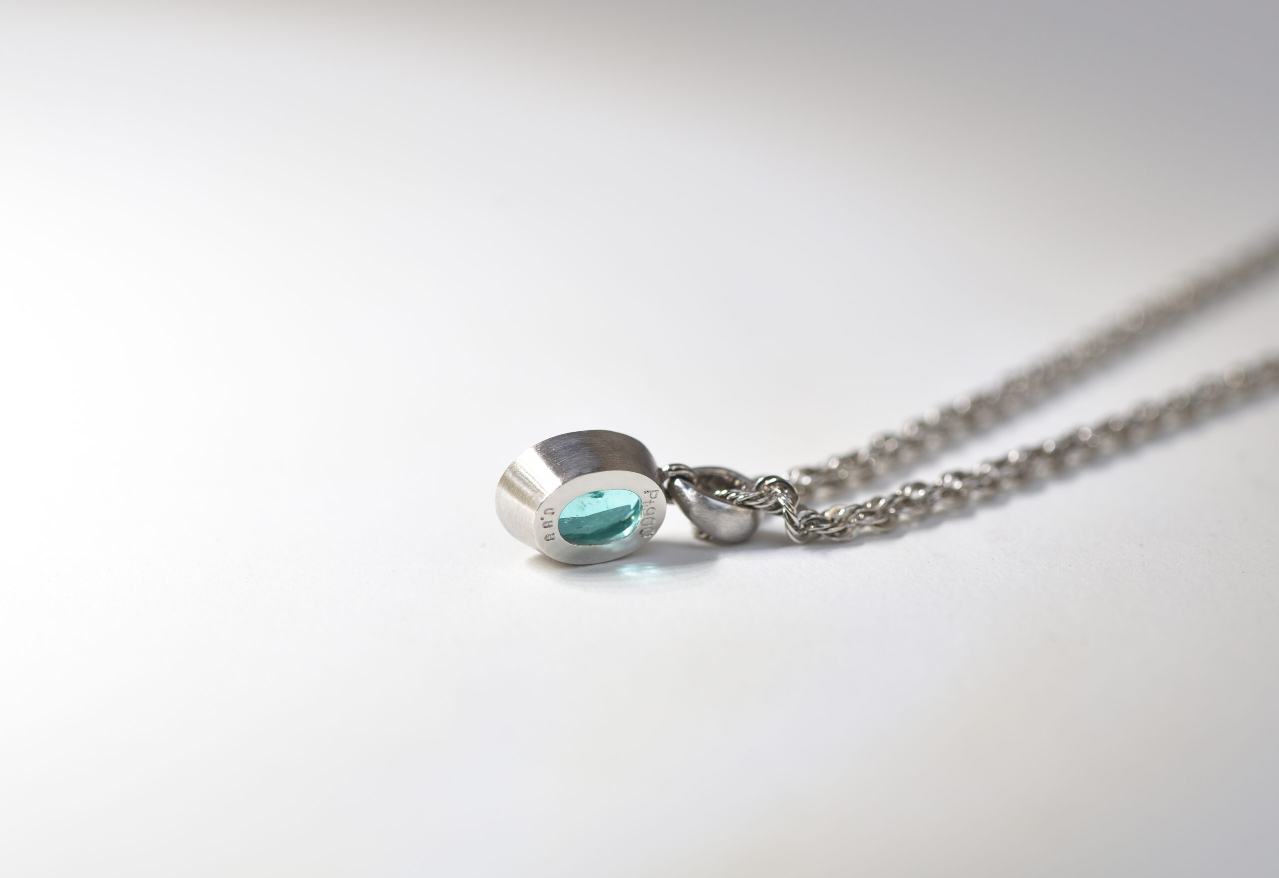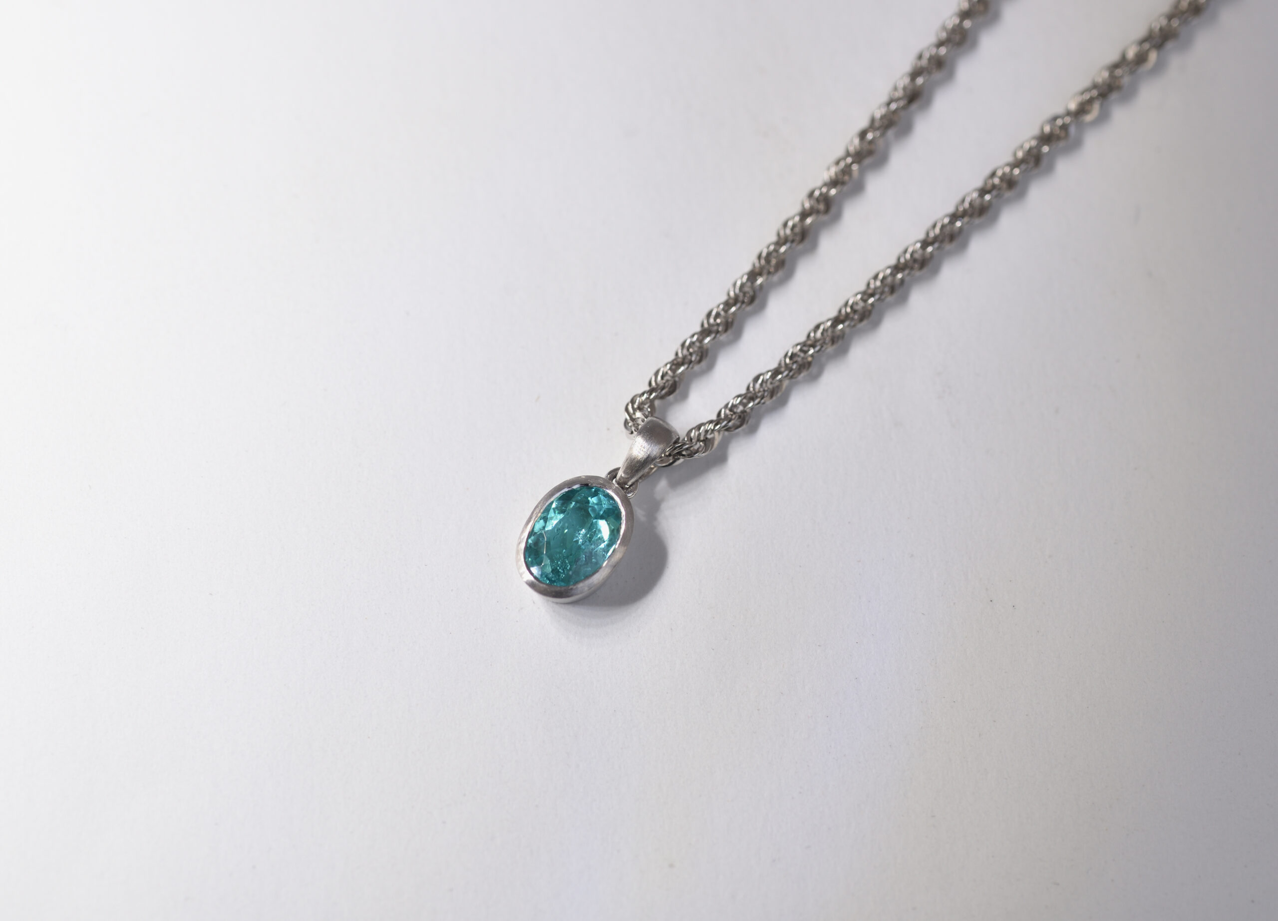 かなり大粒のパライバトルマリンをお持ち込みいただき、ペンダントトップを製作いたしました。