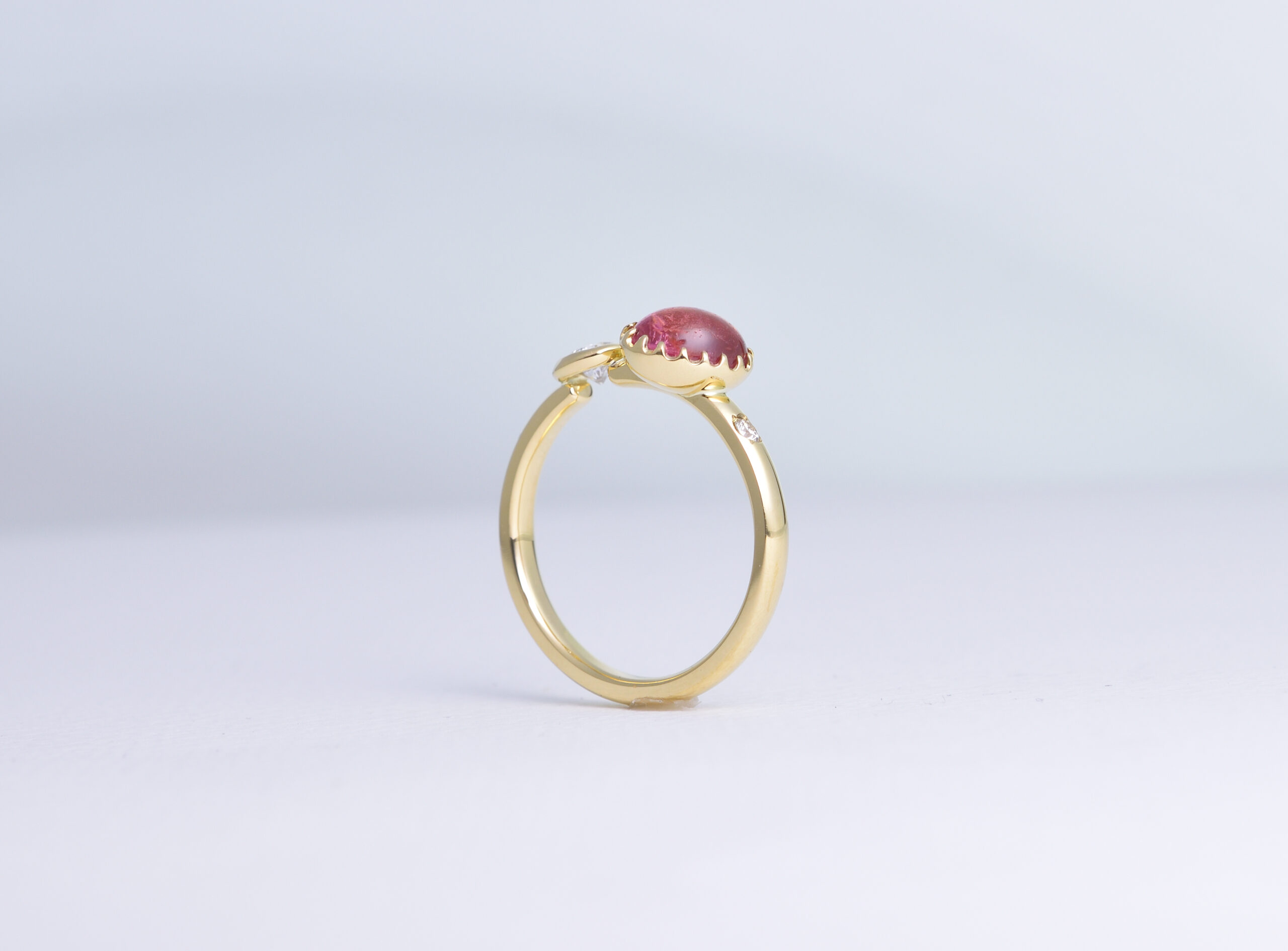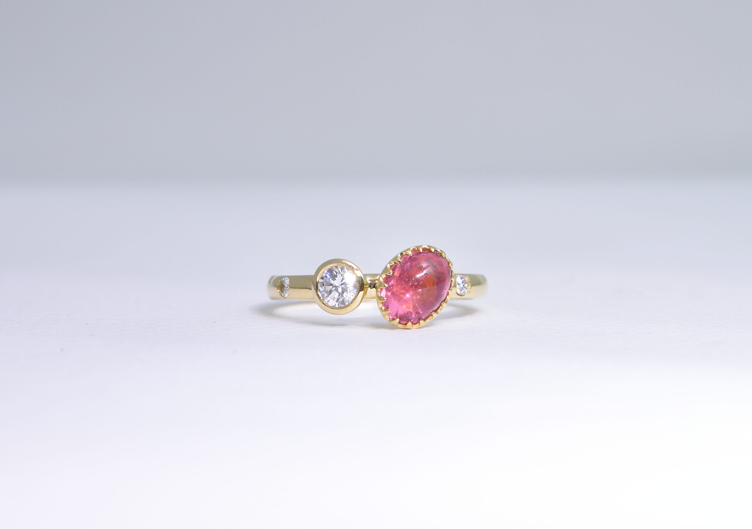 ピンクトルマリンとダイヤモンドを使ったK18YGリング