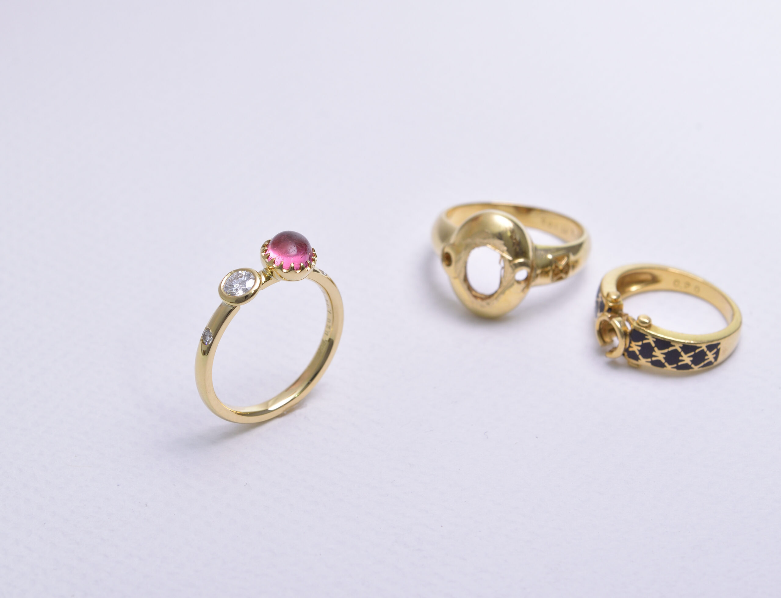 こちらはお持ち込みいただいた2本のリングからトルマリンとダイヤモンドを外し、