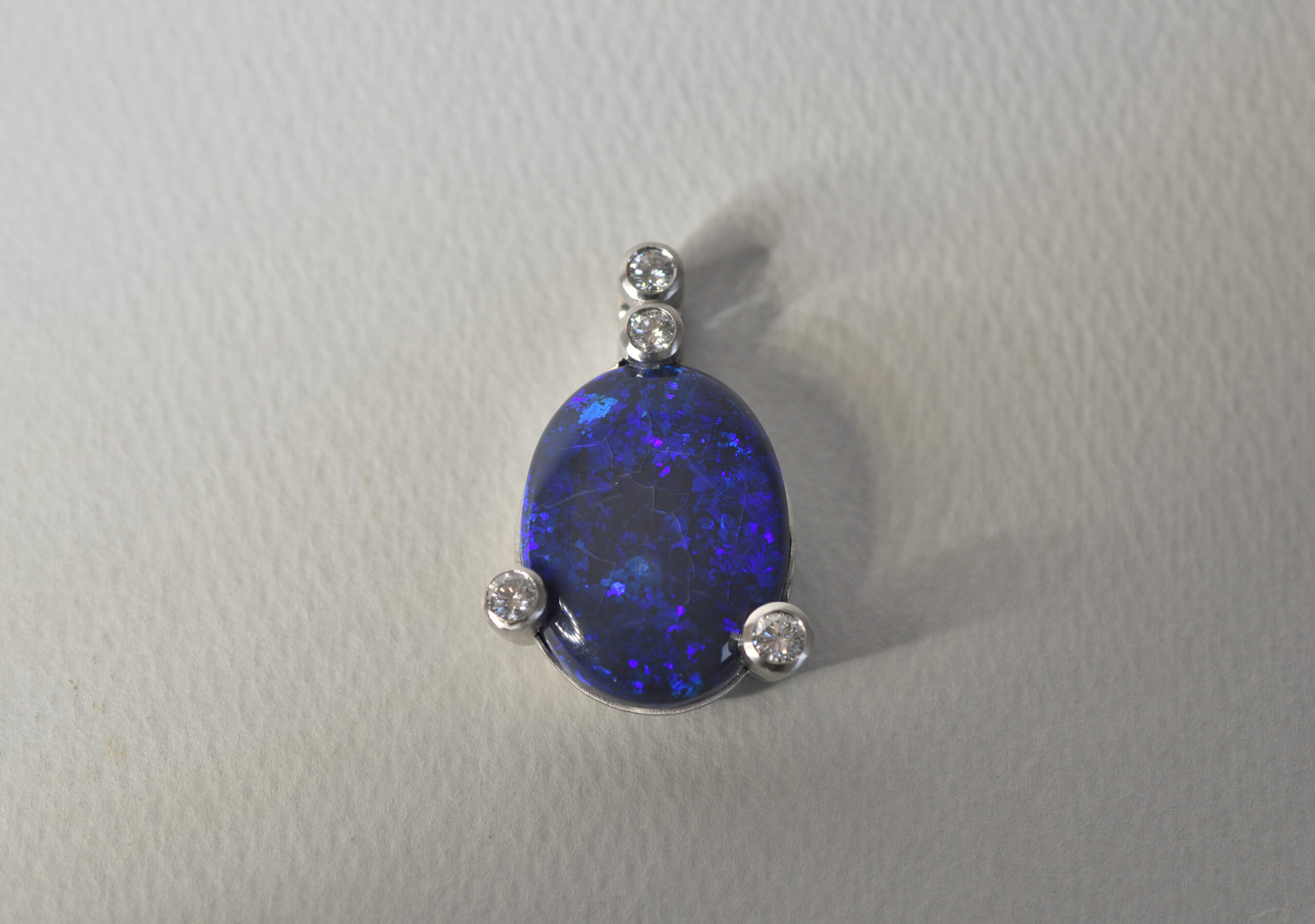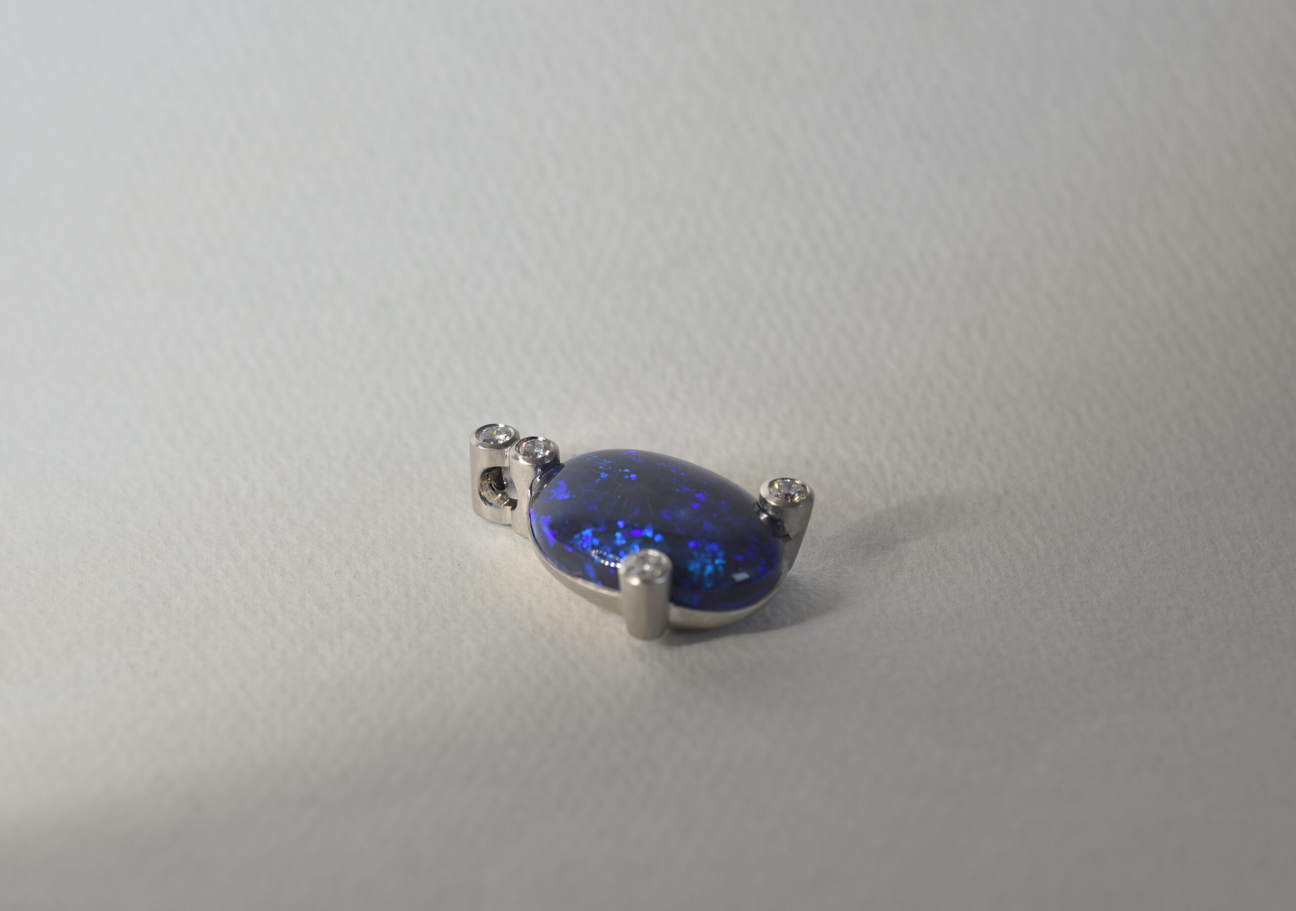 大粒のブラックオパールとダイヤモンドを贅沢に使ったフルオーダーPt900ペンダントトップ