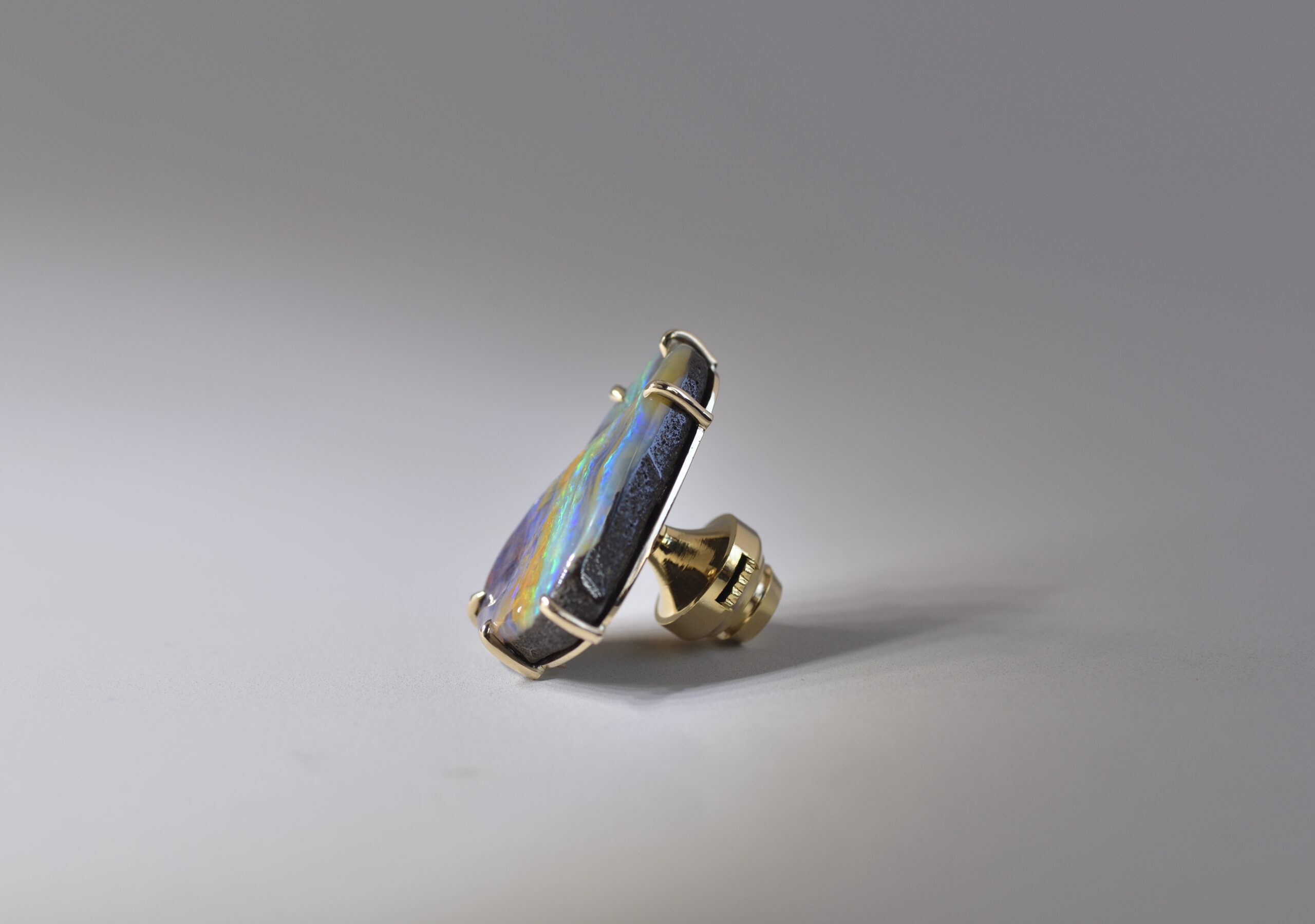 こちらは当店でボルダーオパールをご購入いただき、オーダーメイドで製作したタイニーピンとなります。