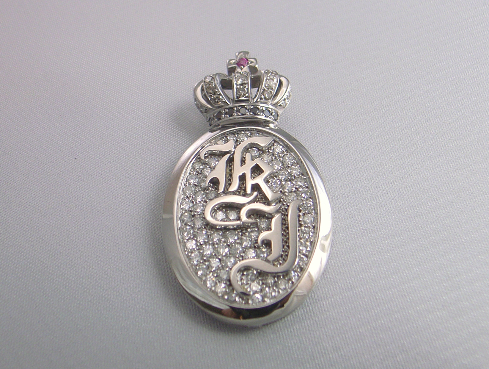 クラウンモチーフのクラシカルなデザインのイニシャルペンダントをご依頼いただきました。