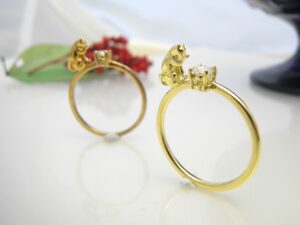 てことで今回は弊社で製作した猫モチーフのジュエリー達をご覧いただこうと思います。