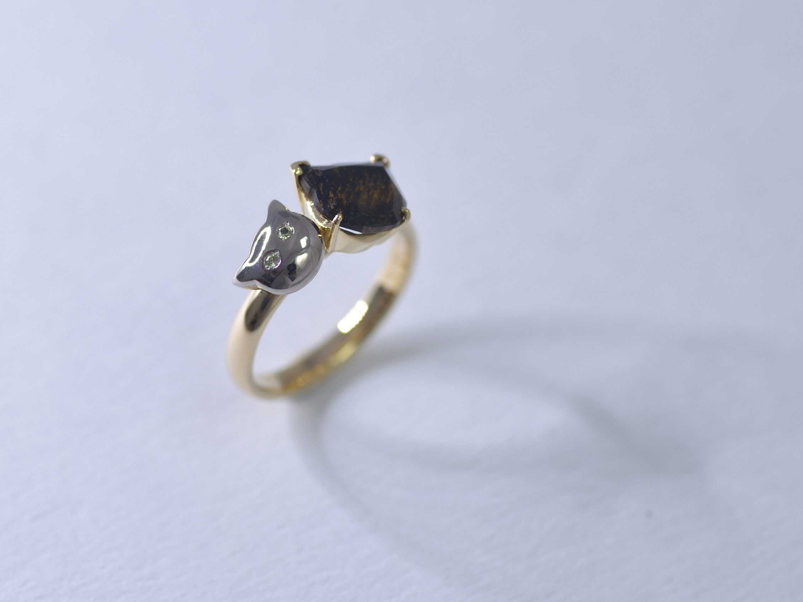 てことで今回は弊社で製作した猫モチーフのジュエリー達をご覧いただこうと思います。