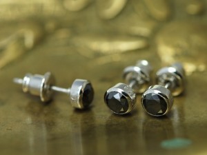 直径約4mm(0.3ct~)一粒のブラックダイヤモンドをピアスとして3つオーダーしていただきました。