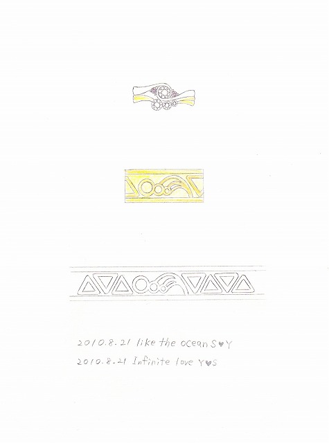 マリッジリングと重ねて日常使いできるデザインになりました。 手作りハンドメイドによる世界にひとつ1点物のオーダーメイドジュエリーを制作しました。
