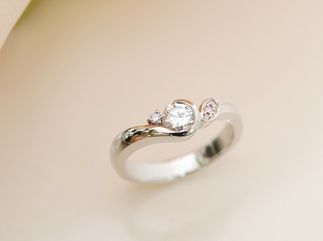 中石のダイヤモンドの両脇には、ピンクダイヤを追加し、