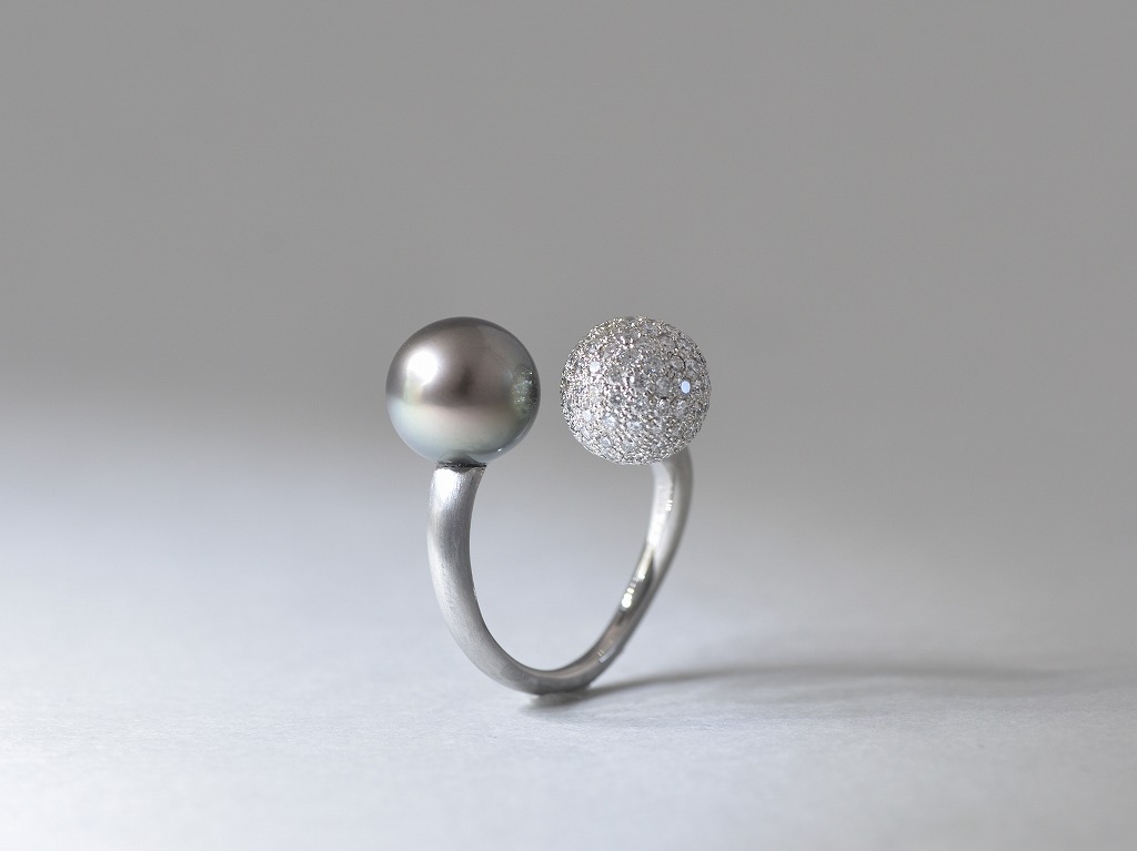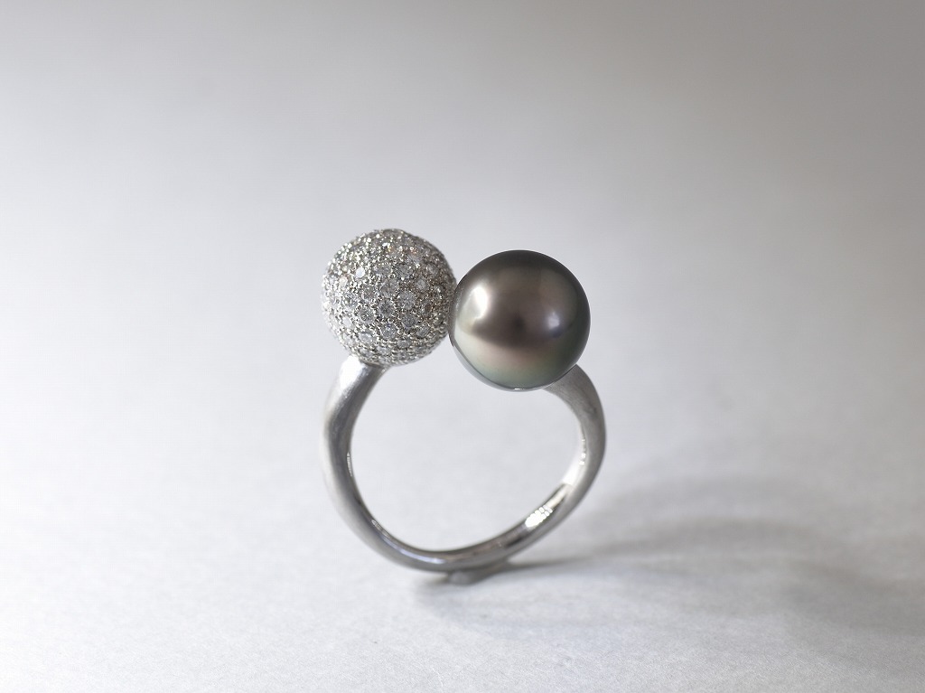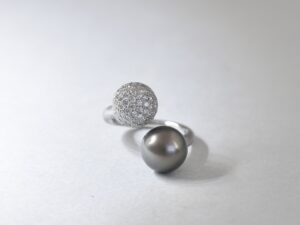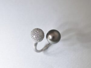 リフォーム324-ダイヤパヴェ留めボールと真珠のフォークリング