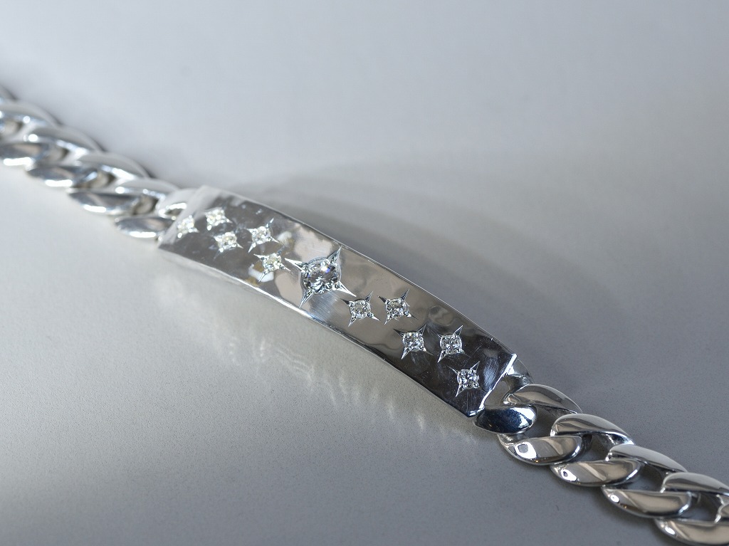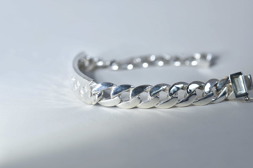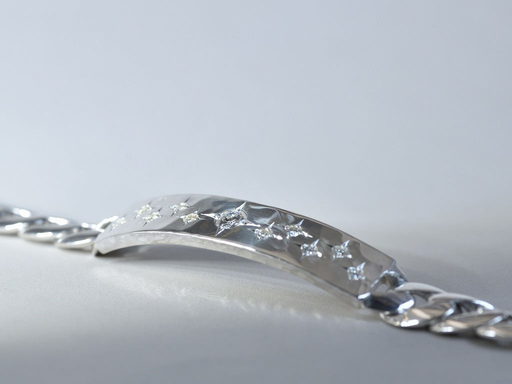 リフォーム325‐メンズブレス、ダイヤ星留めシルバーブレスレット