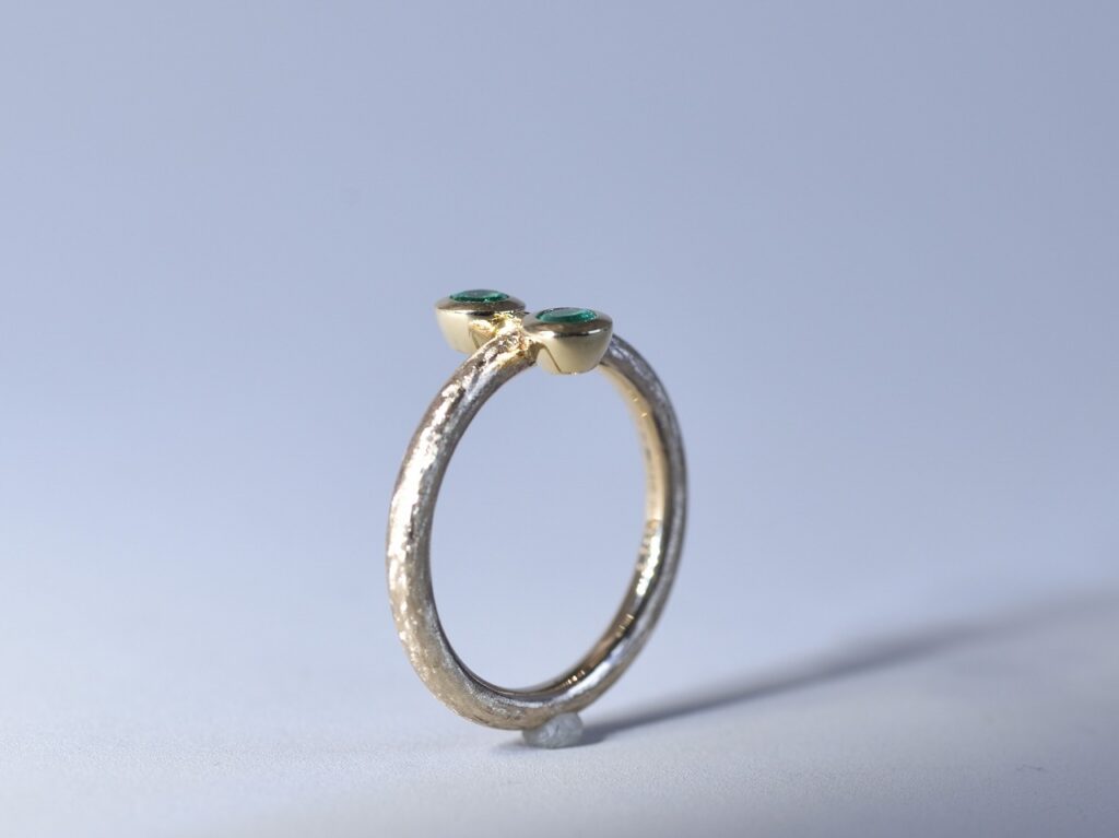 「映画『ウィキッド』のエルファバの眼鏡をモチーフにエメラルドを使って指輪を作りたい」