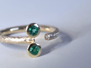 「映画『ウィキッド』のエルファバの眼鏡をモチーフにエメラルドを使って指輪を作りたい」