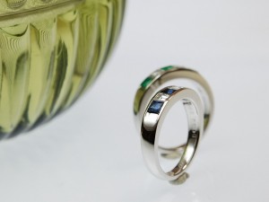 昔のデザインで使いにくいサファイヤとエメラルドの指輪を、