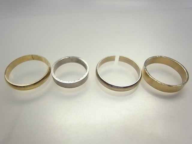 2本をそのまま使用して、他の持込ジュエリー(画像なし)を材料にしてつくった指輪を、
